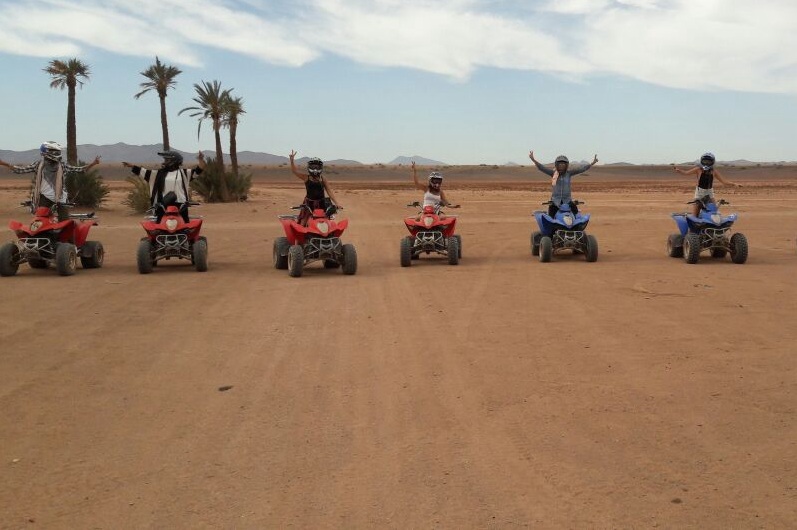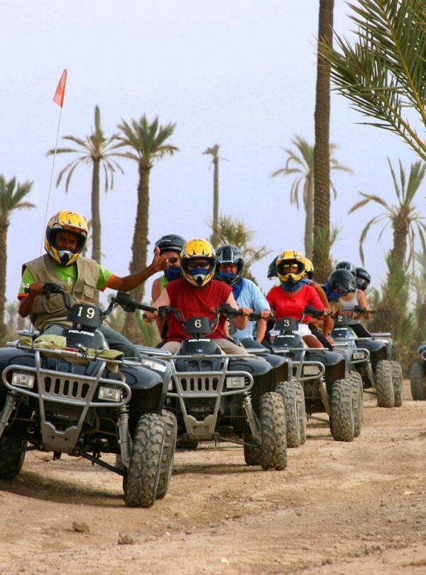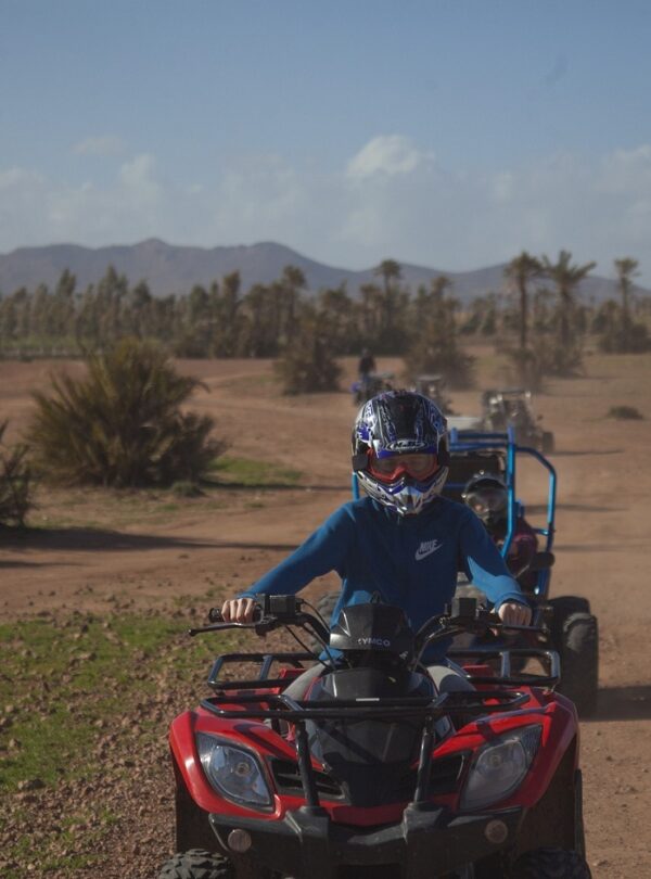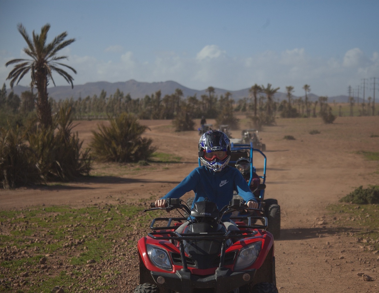 The beauty of the landscapes follows one another, the return to the base will be through the palm grove with the High Atlas mountains as a backdrop, an oasis of palm trees where our guides will stop to take photos.
